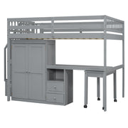 Full Size Loft Bed With Stairs, Bookshelf, Drawers, Desk & Wardrobe, Space Saving Multifunctional Furniture - Gray