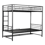 This metal bunk bed is made with sturdy metal and has a clean-cut silhouette that can be matched with any room decor. Designed with safety in mind, this bunk bed comes with a ladder integrated into the frame that is easy to climb up and down. With a practical design, this versatile bunk bed can be separated into two beds to meet your different needs.The shelf underneath the bunk bed creates extra space for you to stock shoes, boxes, toys or any small items you like. Some assembly is required, and the bed will definitely be assembled conveniently.