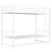Twin Over Twin Bunk Bed With Shelf And Guardrails - White