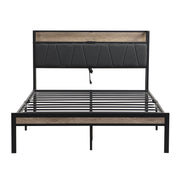 Queen Size Metal Platform Bed Frame With Upholsteryolstery Storage Function Headboard And USB Liner And Footboard, No Box Spring Needed, Large Under Bed Storage - Gray