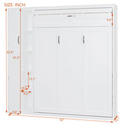 Full Size Murphy Wall Bed With Shelves, Wardrobe And LED Lights - White