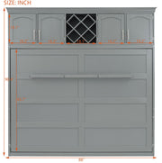 Queen Size Murphy Wall Bed With Top Cabinets & Wine Rack - Gray