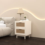 Nightstand With 2 Drawers, Storage Side Table For Bedroom - Antique Natural / Rattan