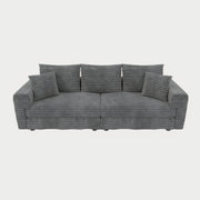 Plush Corduroy 4 Seat Sofa, Modern Comfy Upholstered Sofa Cloud Couch, Deep Seat Couches With Soft Pillows, Convertible Deep Seat Sofa Lounge Chair For Living Room Bedroom, Apartment, Office - Black / Gray