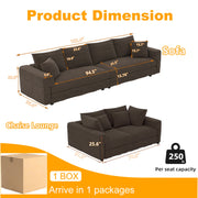 Plush Corduroy 4 Seat Sofa, Modern Comfy Upholstered Sofa Cloud Couch, Deep Seat Couches With Soft Pillows