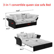 - 3-in-1 Convertible Sleeper Sofa Bed: Pull out the bed frame under the seat. There are two length options available. It can be freely converted into a lounge chair or a queen size bed as needed.