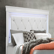 Shaker - Queen Bed With LED Lighting And Crystal Inspired Tufted Headboard - White
