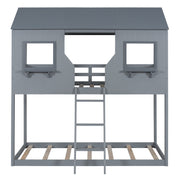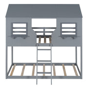 Twin Over Twin Bunk Bed With Roof, Window, Guardrail, Ladder - Gray