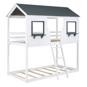 Twin Over Twin Bunk Bed With Roof, Window, Guardrail, Ladder
