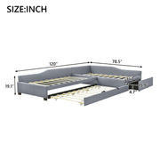 Upholstered Double Twin Daybed With Trundle And Drawer - Gray