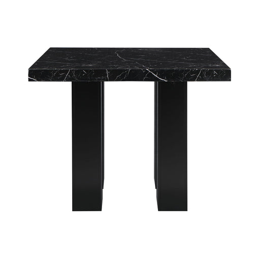 Elegant Design: This bar table features a sophisticated faux marble top paired with a contrasting double pedestal base, adding a chic and modern ...
