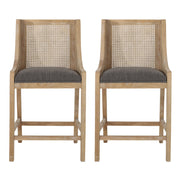 Upholstered Counter Stool With Cane Webbing Backrest (Set of 2) - Natural / Charcoal