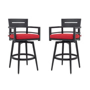 Outdoor Swivel Bar Chairs, 360 Degree Rotation With Ergonomic Backrest (Set of 2) - Ember Black / Jocky Red