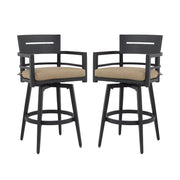 Outdoor Swivel Bar Chairs, 360 Degree Rotation With Ergonomic Backrest (Set of 2) - Ember Black / Linen Sesame