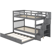Twin Over Twin Stairway Bunk Bed With Twin Size Trundle For Bedroom - Gray