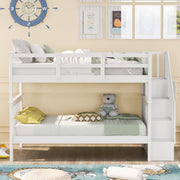 Twin Over Twin Stairway Bunk Bed With Storage And Guard Rail For Bedroom - White