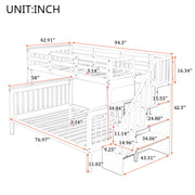 Twin Over Full Bunk Bed Stairway With Storage And Guard Rail For Bedroom - White