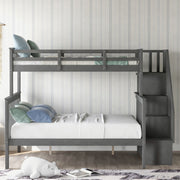 Twin Over Full Bunk Bed Stairway With Storage And Guard Rail For Bedroom - Gray