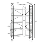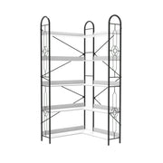 Industrial Style 5 Tier Corner Bookshelf With Thickened Iron Frame - Ivory White