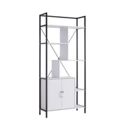 Six Shelf Modern Bookcase With Two Door Storage Cabinet With Two Shelves - White / Black