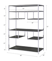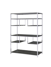 - Rustic Finish: The wooden shelves feature a rustic gray oak finish, complemented by a rich veneer, offering a warm contrast to the modern chrome metal frame.