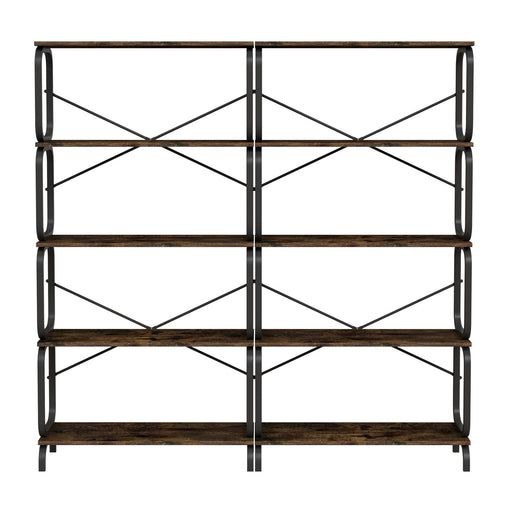 5 Tier Industrial Bookshelf, Tall Bookcase With Open Design, Vintage Storage Organizer