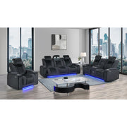 Duran - 3 Piece Power Reclining Sofa Loveseat And Recliner, LED, USB And Bluetooth Speaker - Black