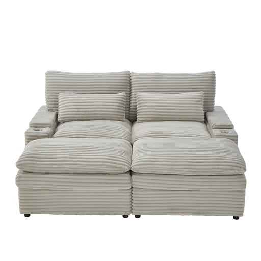 Ver todos os detalhesModern Minimalist Corduroy Combination Sofa With 2 Comfort Cushions With USB & C Charging Ports