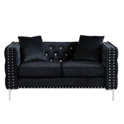 Wide Sofa With Jeweled Buttons Square Arm, 2 Pillows - Black