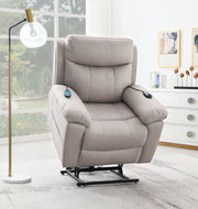 Chriki - Polished Microfiber Power Motion Recliner With Lift Heating Massage Chair - Beige