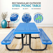 Outdoor Steel Picnic Rectangular Table With Umbrella Pole - Blue