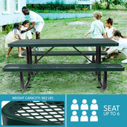- Durable Construction: Engineered with a robust steel frame, this picnic table ensures durability and longevity even in harsh outdoor conditions.
